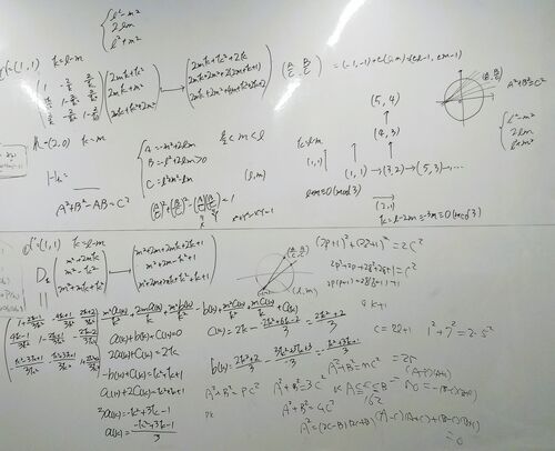 ピタゴラス数.の整数解については,ほぼ見通しがたった. そこで,このあとどう展開していくか,なのだが,例えばに由来する整数解探しなどを提案した. などでは有理点がないのでそもそも議論から外れるが,のときなど,まだまだ遊べそうな話題じゃないだ…