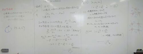 一人目,多面体. 半正多面体が角柱・反角柱を除いて13種類あることの証明. [3,4,3,4]や[3,4,3,5]型での議論,[3,3,4,4]や[3,3,4,5]などが存在しないことまでは至らなかった.美しい幾何学作者:谷 克彦技術評論社Amazon 二人目,身の回りの力学. あの長周…