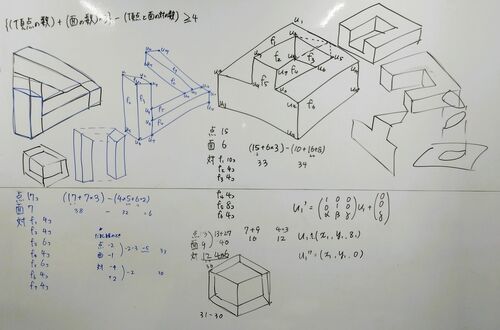 一人目,錯視の数理. 構造的に実現可能なる概念は復元立体の自由度に関する不等式に言い換えられるのだが,対象とする錯視の範囲をはっきりさせないといけないことが分かった. 現実にある立体たちが,たまたま同じ線画になる状況があって,それも一般の位…