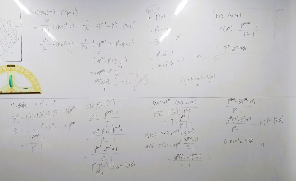 さて,本日の報告は,] でのノルム完全数探しと,通常の自然数での奇数の完全数があったとしたら,どんな条件がつくのか,の2本立てで並行して探求している模様.