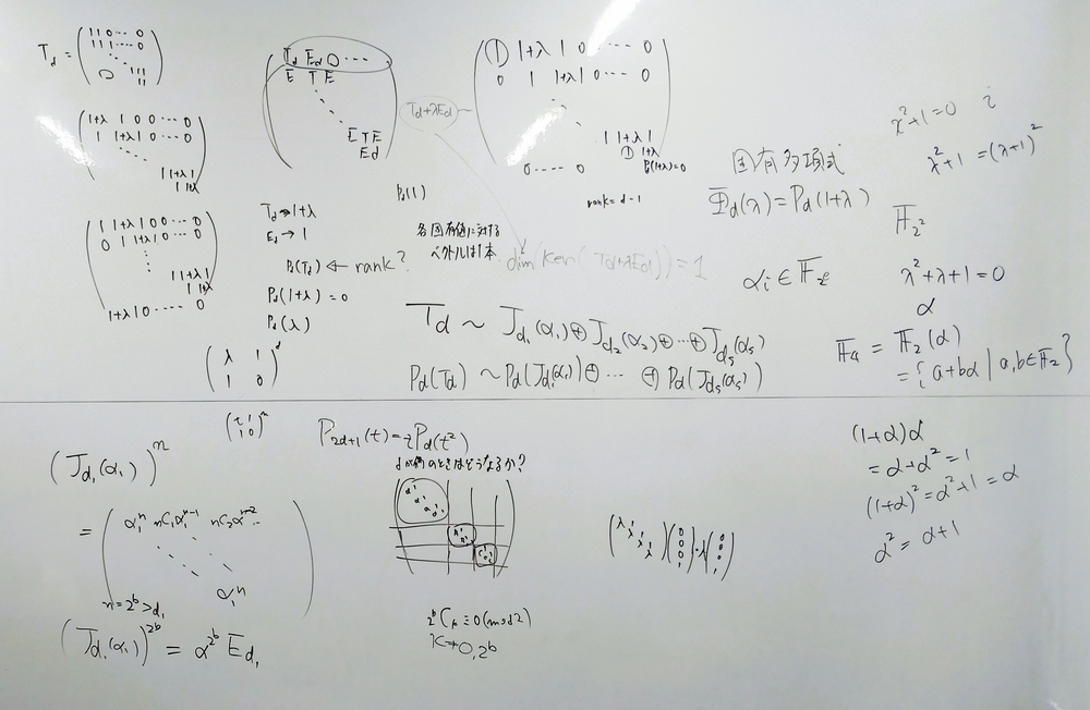 一方,各固有値の固有空間は1次元だったことと合わせると, のJordan標準形は2次ブロックだけの直和に分解され,